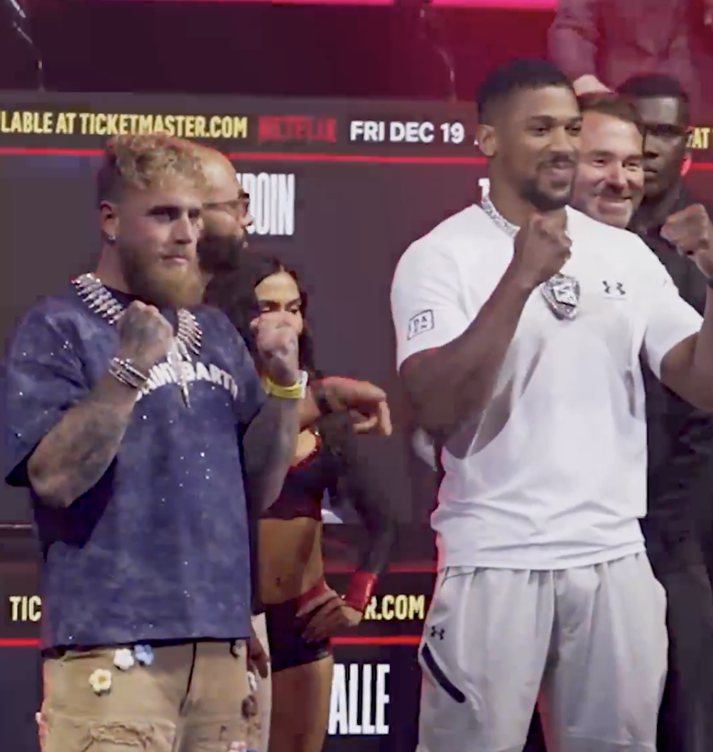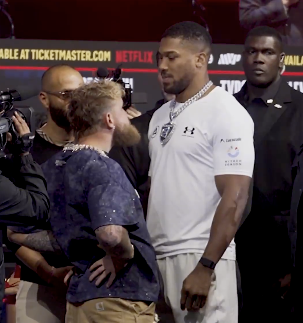 🚨 Size difference between Jake Paul and Anthony Joshua as they face-off.