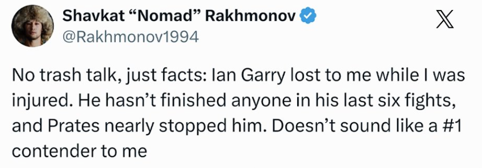 🚨 Shavkat Rakhmonov makes his case as to why Ian Machado Garry isn’t the No. 1 contender.