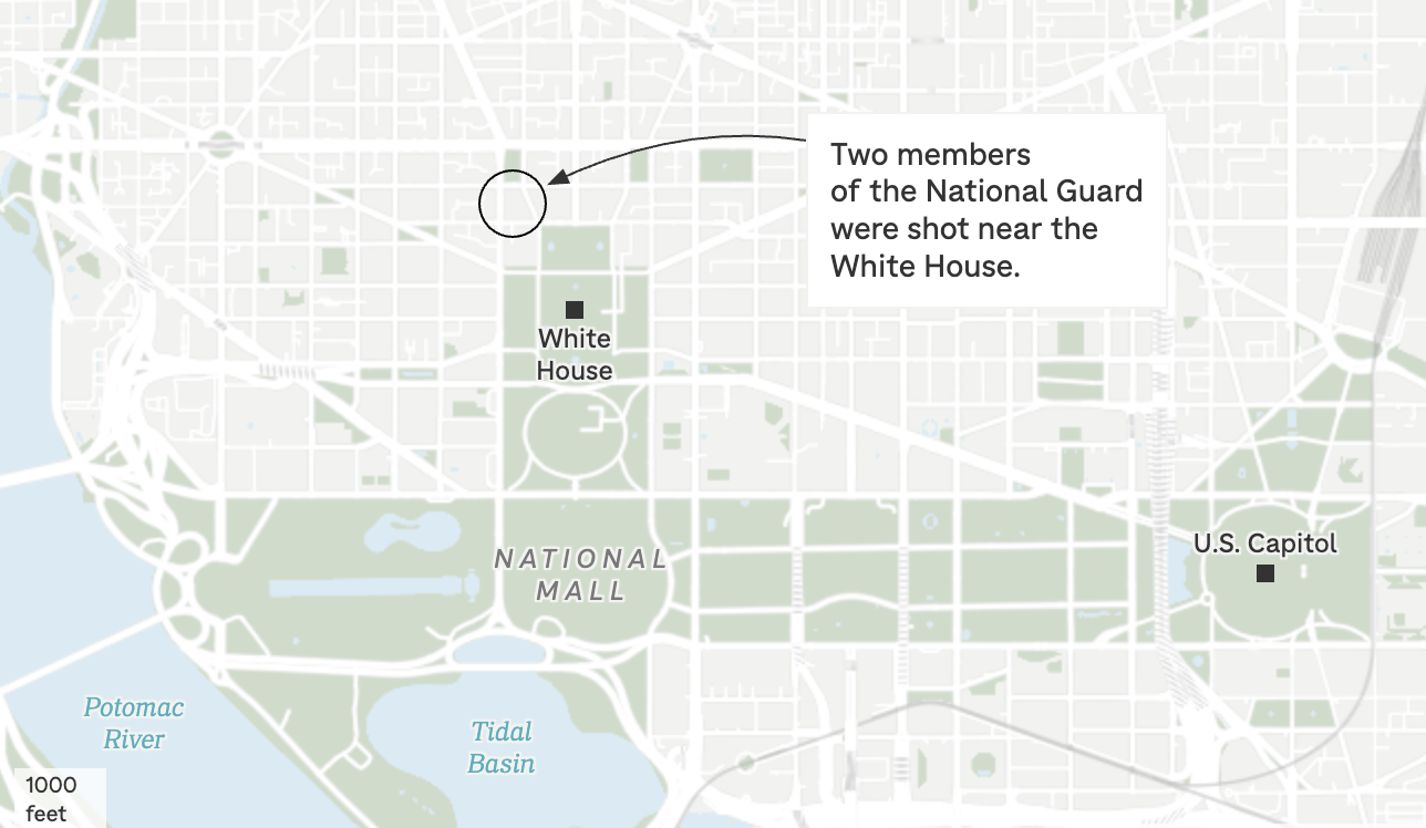 🚨 Two West Virginia National Guard members were critically injured after being shot just blocks from the White House in what authorities describe as a targeted attack. Officials say video shows the assailant rounding a corner and immediately opening fire on the troops. The suspect, according to sources, is an Afghan national who entered the U.S. in 2021. The shooting comes amid ongoing controversy over the Guard’s presence in Washington and officials say the motive remains unknown.