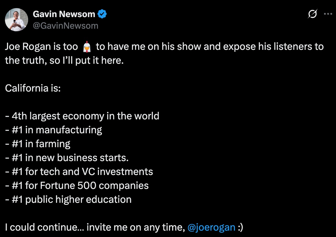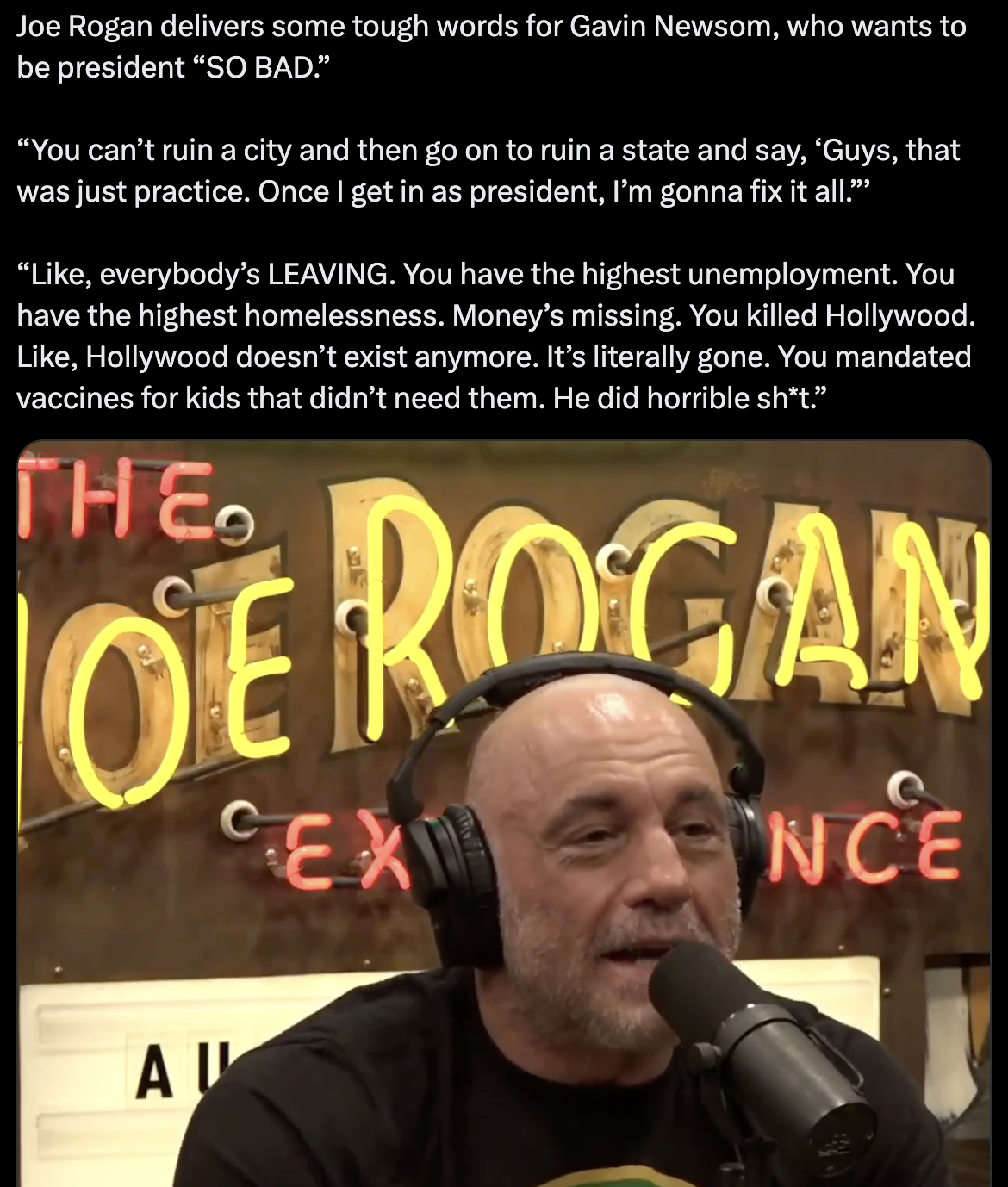 🚨 California Governor Gavin Newsom with an online jab to Joe Rogan.