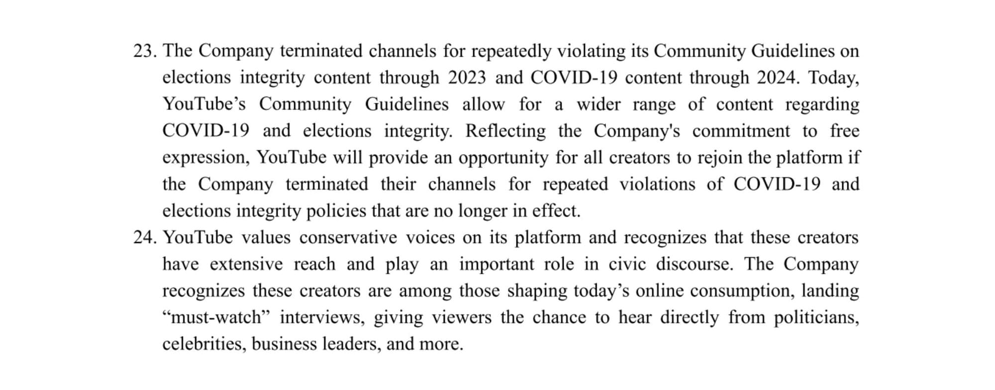 🚨 YouTube will reinstate creators previously banned for violating now-defunct policies on COVID-19 misinformation & election integrity according to a letter from Alphabet to Rep. Jim Jordan. In the letter, Alphabet emphasized its commitment to free expression, accused the Biden administration of pressuring the platform to censor content & stated that the reinstatement reflects evolving policies. The move is being viewed as a win for conservatives who have long criticized perceived bias and censorship by tech platforms.