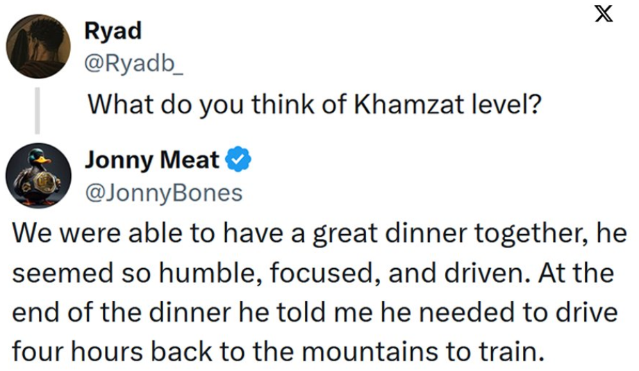 🚨 Jon Jones with praise for UFC Middleweight champion Khamzat Chimaev.