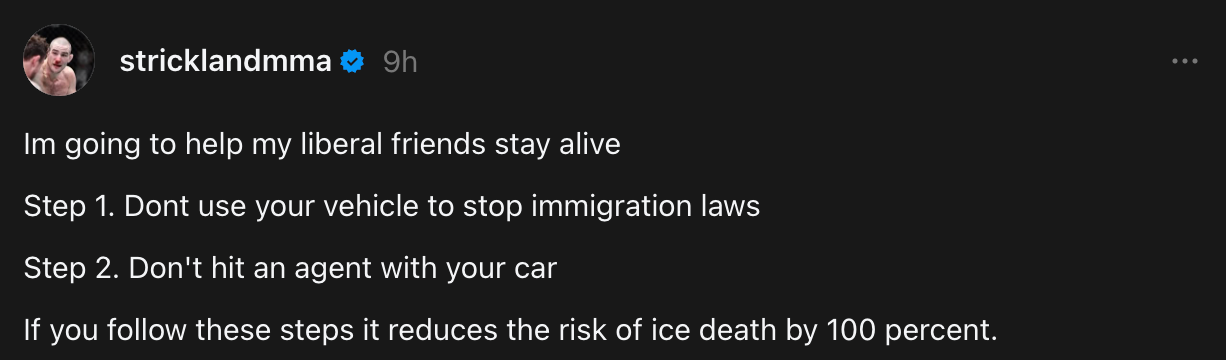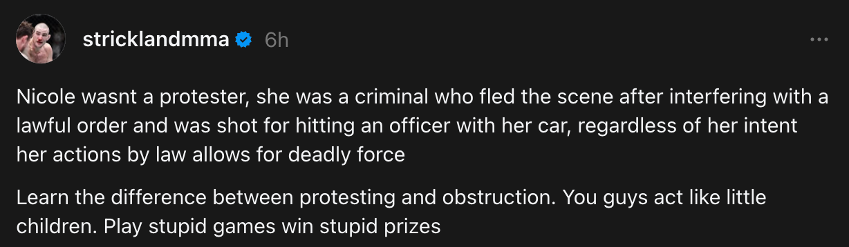 🚨 Sean Strickland on the fatal shooting in Minneapolis, MN which took the life of Renee Nicole Good.