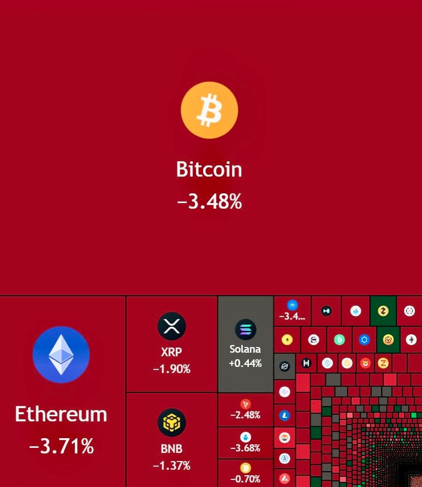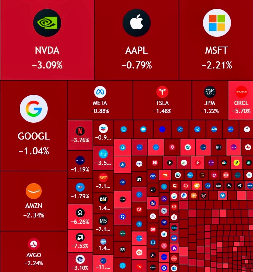🚨 Bloodbath in the US stock market ($1T wiped) & crypto market ($100B+ wiped) today.