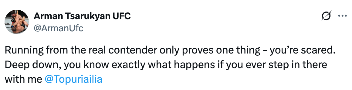 Arman Tsarukyan with a message to Ilia Topuria.