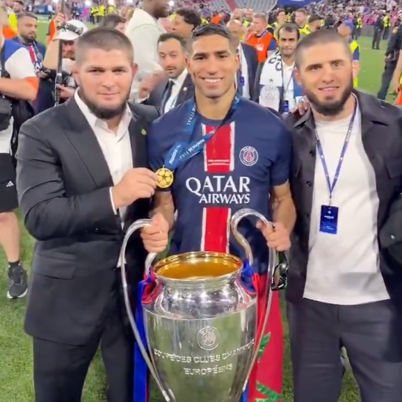 Khabib Nurmagomedov and Islam Makhachev were at the Champions League final between Paris Saint-Germain F.C. (PSG) and Inter Milan at Allianz Arena in Munich, Germany 🇩🇪. PSG won 5-0.
