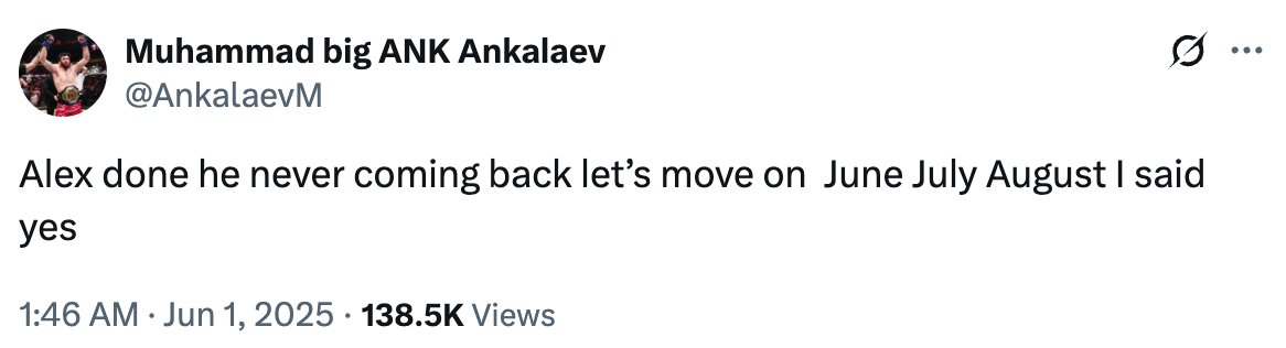UFC Light Heavyweight champion Magomed Ankalaev says he wants to move on from a bout with Alex Pereira: