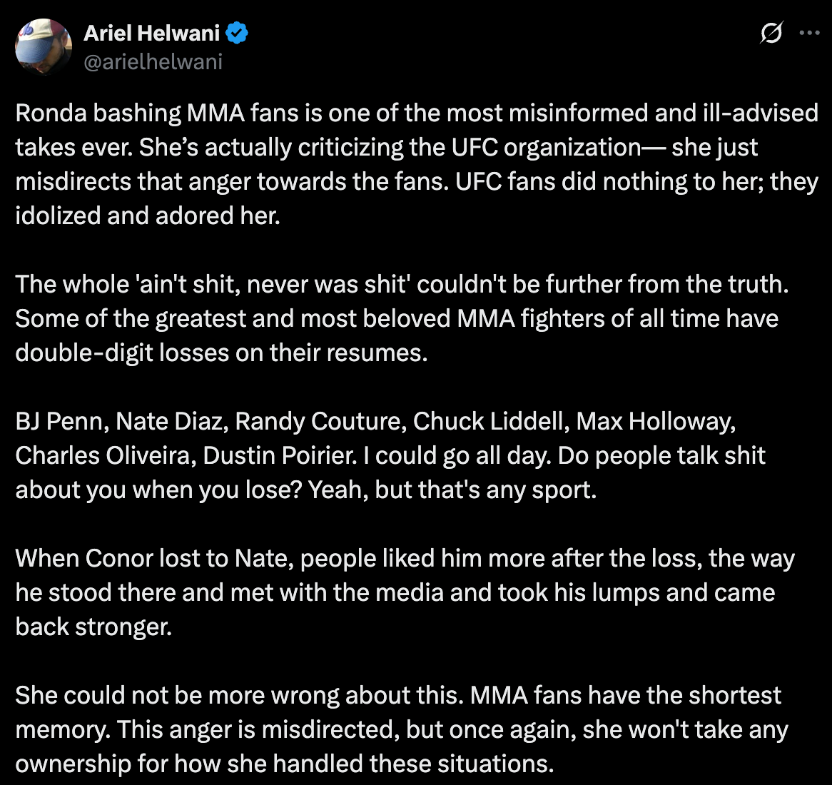 “I’ve been told by multiple people that they’ve been approached [in throwing a fight]. This is a massive issue for the UFC. When you consider the questionable refereeing as of late, you can’t help but let your mind go there.”