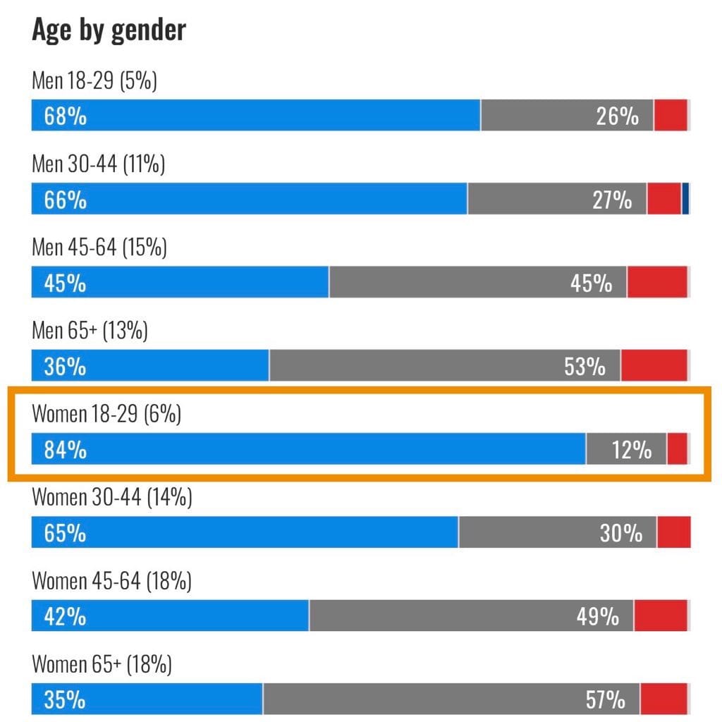 🚨 84% of Gen-Z women (age 18-29) voted for Zohran Mamdani.